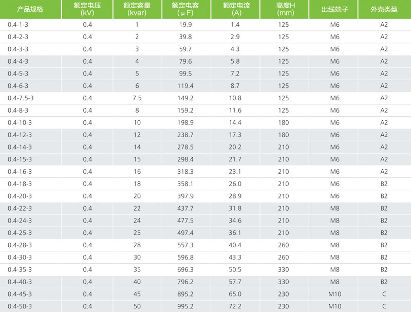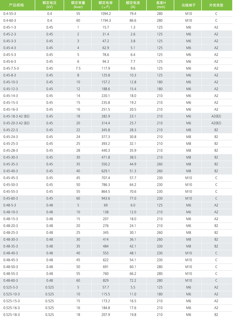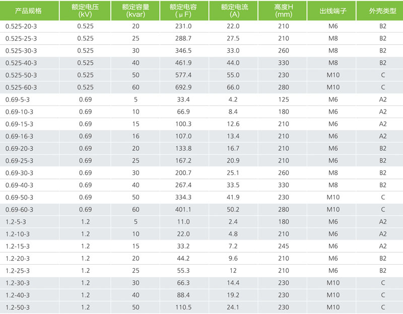 額定容量:0.4-0.69kv的1-60kvar,其他電壓等級的容量另定。