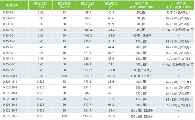 2.額定容量(kvar):15-100